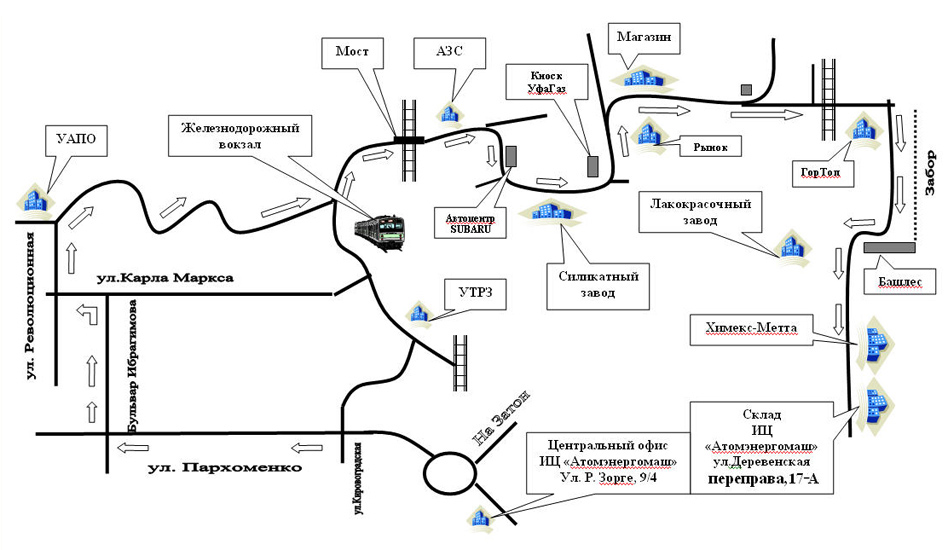 Схема проезда для самовывоза продукции из г. Белебей: